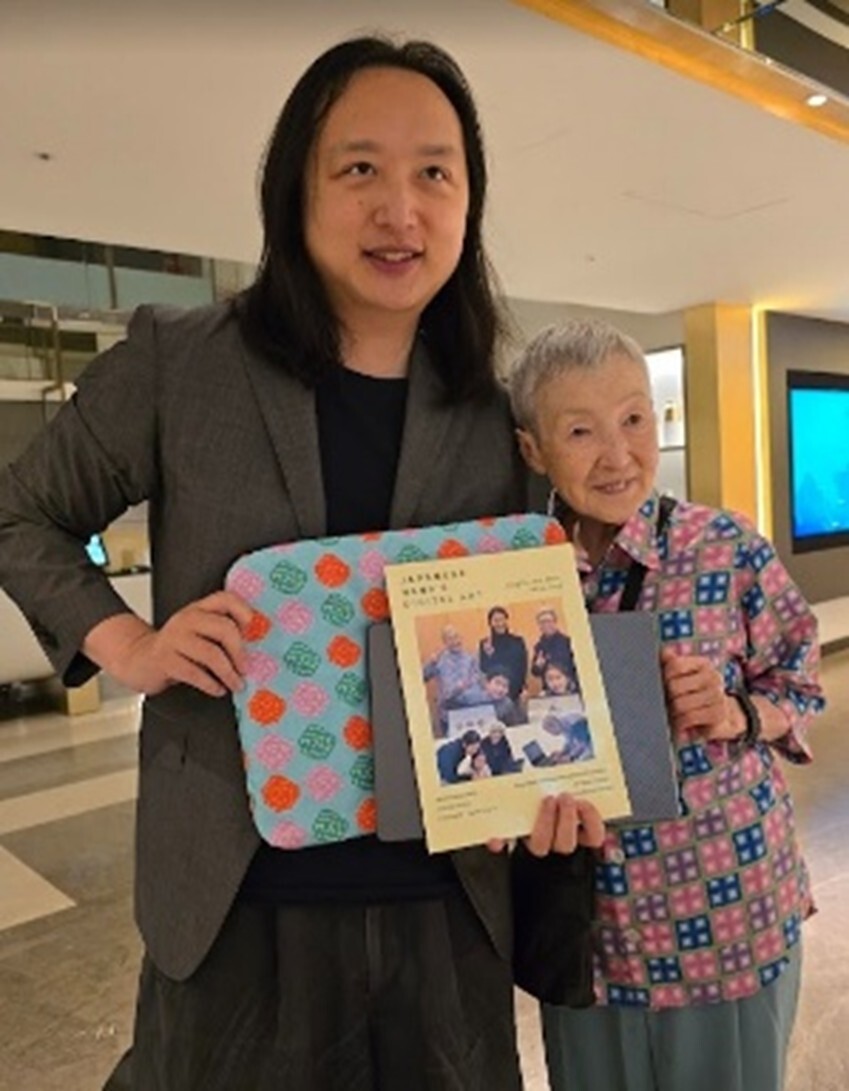 若宮理事は2年前にオンライン対談をした台湾の元デジタル大臣オードリータンさん(4月18日生)とお会いしてお互いの誕生日をお祝いしました。若宮理事からExcelアートでデザインしたローズマーちゃん柄のバッグを贈呈。